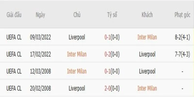 Thống kê phong độ, lịch sử đối đầu Inter Milan – Liverpool